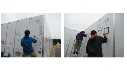 本校の校区内にある納屋町商店街のゆるキャラ「なやまっち」を描く取組が,高等部生徒会を中心として始まりました。まずは生徒会メンバーが壁に描いて全校への紹介を行いました。
