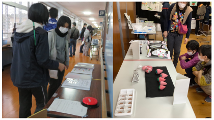 本年度の研究・各学部の取組発表の後は,学部毎に複数ある会場をまわり,授業で使用した教材教具や支援グッズ等の展示を鑑賞しました。