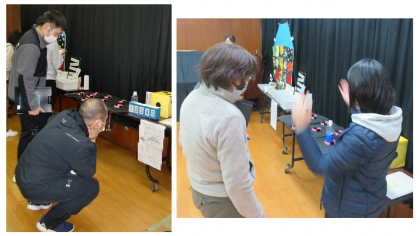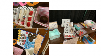 小学部では,かずの学習をする際に指導者の手作りによる本物のような食べ物を使ったり,様々な感触や素材を使用して1つの造形作品を完成させたり,黄色地に黒というコントラストをはっきりさせたさいころを使ったり等,様々な工夫がされていました。
