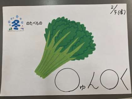 今日のクイズは食材クイズ こたえは「しゅんぎく」です。