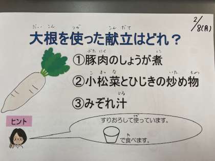 今日の給食カレンダーは,2月給食目標より「食事で体の中から温まろう」についてでした。