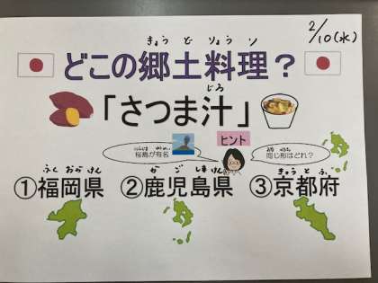今日の給食カレンダーは「さつま汁」についてでした。