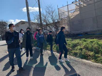 地図を見ながら目印になる建物を探したり,携帯情報端末で自分のいる場所を確認したりしながら歩きました。桃山城が大きな目印となり,「この方向で大丈夫」等話し合いながら呉竹総合支援学校へたどり着きました。