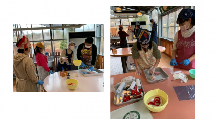 ソーセージ作り体験では,お肉に氷水を加えて混ぜます。その後,スパイス,あらびきのお肉,つなぎの粉を入れて指をたてながらさくさく混ぜます。