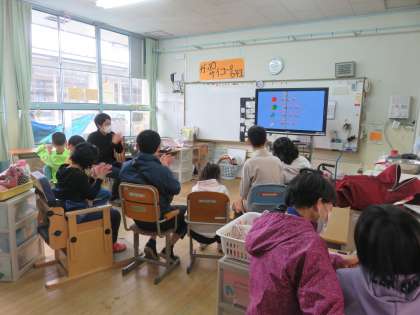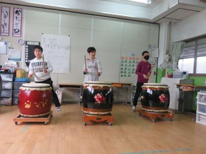 小学部高学年はおんがくかいをしました。みんなで歌を歌った後は,和太鼓演奏!最後のポーズもばっちり決めて,大きな拍手をもらいました。