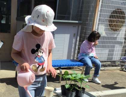 植えたところに優しく土をかけたり、大きくなあれとたっぷり水をあげたりしました。