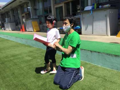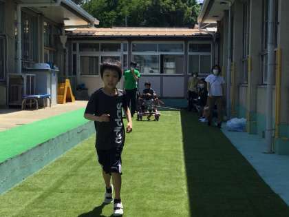 3年生は,6月のはじめに校内の人工芝で『mini学校祭 体育の部』を開催し,開会宣言,体操,競技と本番さながらで行いました。1か月間,30m走,玉入れ,大玉わっしょいを練習をしてきて,大変成長しました。練習の成果を力いっぱい発揮することができました。