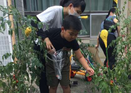 赤いミニトマトを手に取って、ぷちっと上手に採ることができました!
