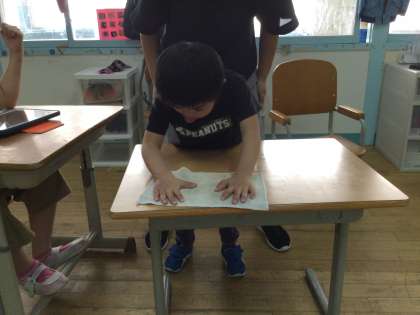 先生たちに「きれい!ありがとう!」と言われ,にっこりの子どもたちです。