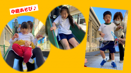 久しぶりに,中庭遊びをして,子どもたちも大はしゃぎ。笑顔いっぱいの時間になりました!