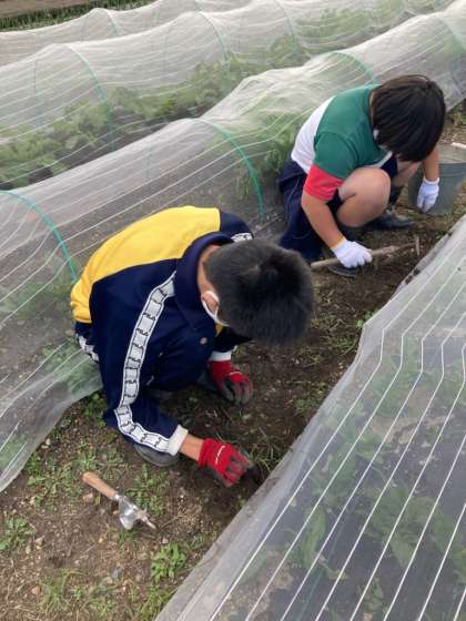 農園の整地や雑草ぬき・収穫後の整理等も行い,農園の