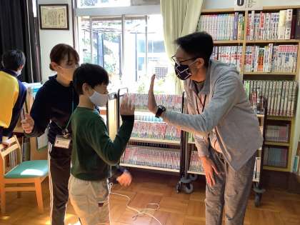 今回は,「animal gesture game」を行いました。「monkey」や「rabbit」,「snake」等色んな動物の動きを生徒が真似て,みんなに当ててもらうというものです。