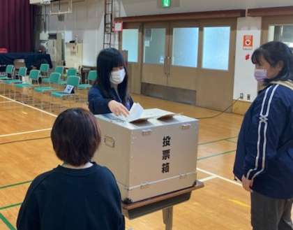 区役所から本物の投票箱も借りて,一人ひとりの大切な一票を投票しました。