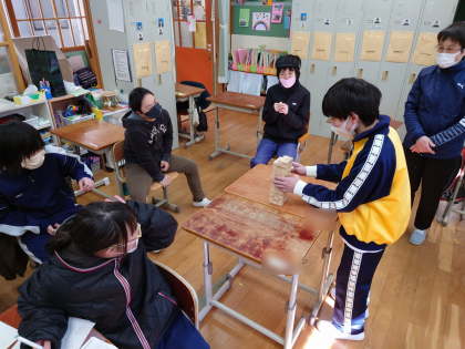 先日,クラススタディでは,3年生を送る会に向けてプレゼントのラッピングをするクラス,GIGA端末のアプリを使って学習するクラス,みんなでジェンガをするクラス,など,様々な学習をしました。