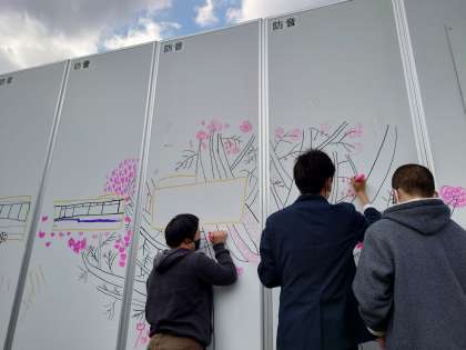 校門入ってすぐの壁には,桜の花が咲きだしました。