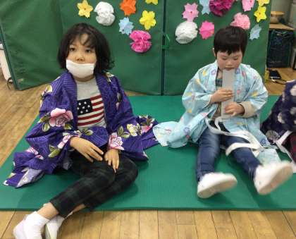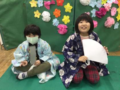 「うれしいひなまつり」の歌や絵本「おいしいひなまつり」の読み聞かせで盛り上がったあと,みんなでお花の飾りを作りました。