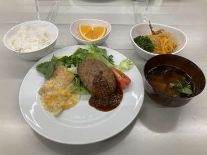 夕食のメニューはハンバーグとチキンです。美味しそうですね。