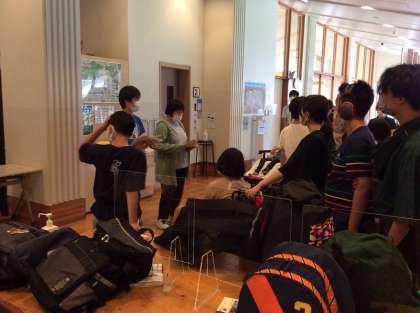 無事にみんな元気に宇多野ユースホステルに到着しました。入館式の様子です。