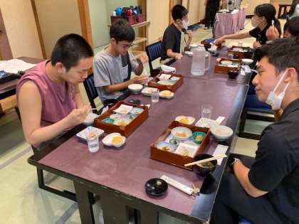 朝食です。たくさん食べて,今日の活動に備えます。