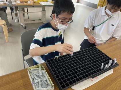 「のぞみ学園(竹田キャンパス)ふきのとう」さんで、生き方探究チャレンジ体験をさせて頂きました。袋詰めしたネジを1個ずつ、ケースに入れる仕事をしました。ケースが全部埋まったときは、「できました。」と報告をしたり、追加のケースをもらった時は「ありがとうございます。」と職員さんにお礼を伝えたりすることができました。