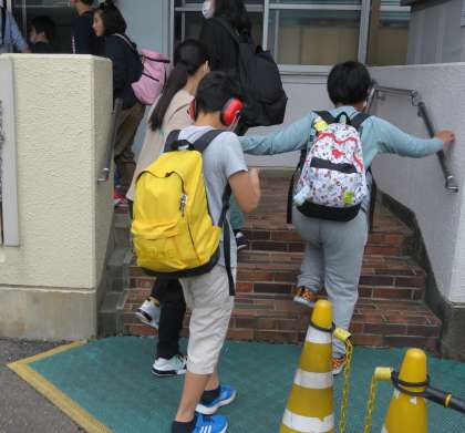 小学部5年生、みんな元気に無事、学校に到着しました。