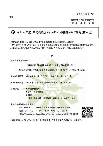 【令和4年度 研究発表会(オンデマンド開催)のご案内(第一次)】