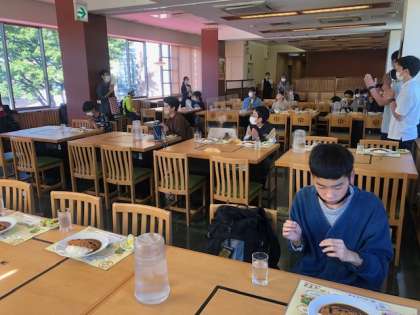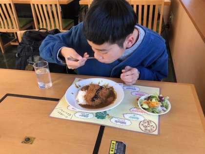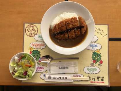 名古屋ビール園 浩養園での昼食の様子です。カツカレーで元気モリモリ!