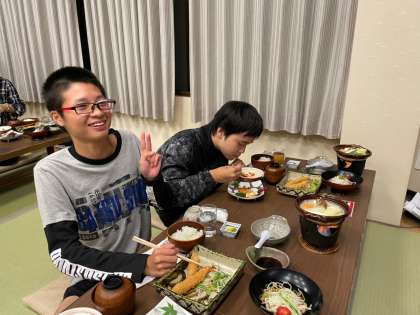 昨日の夕食の様子です。豪華なご飯でお腹いっぱいになりました。