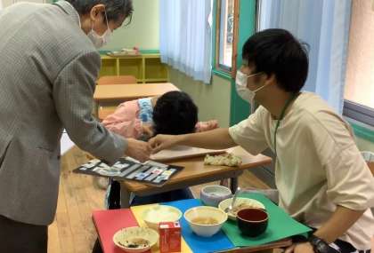 先週、児童精神科医の門先生に来校いただき、小学部・高等部のPECSの取組について、各教室を回ってご助言いただきました。次回は12月に来校いただく予定です。