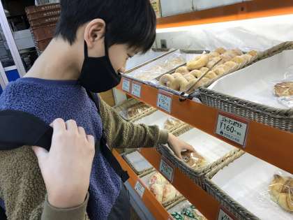 目の前のおいしそうなたくさんのパンに歓声を上げ、ウキウキしながら買い物しました。買ったパンを見せあったり、買い物袋のパンに何度もめをやったりと、とにかく食べるのが待ち遠しそうでした。
