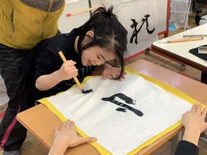 書き初めで、学年目標の『ちゃれんじ!』を書きました。真剣な表情でなぞり書きをする子、指導者と一緒に筆を握って書く子、「しゅっ。」という言葉に合わせて筆を動かす子、それぞれの力強い字がとても素敵です。今年もたくさんのチャレンジをしたいと思います!