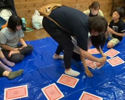 残念ながら雷雨でキャンプファイヤーは中止となりました。代わりに宿泊棟で神経衰弱などをして楽しみました。