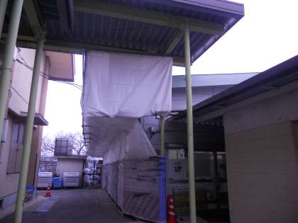 ご近所のみなさまにもご迷惑おかけしますが,よろしくお願いします。3月下旬に終了予定です。*写真は足場に落下物防止のネットや
