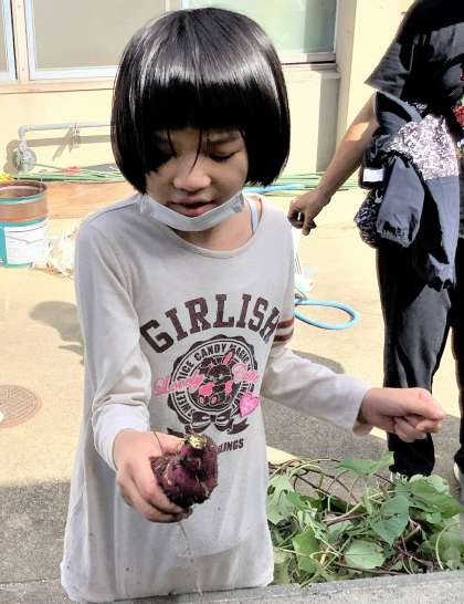 畑の奥深くまで掘っていくと、立派なさつまいもがたくさん出てきました!
