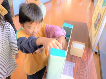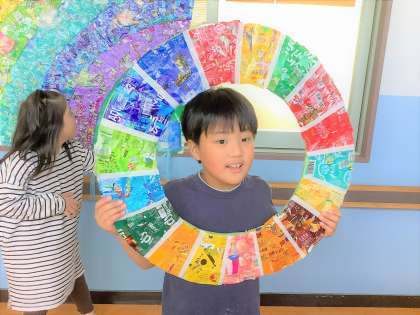 自分の作品を見つけると、「あった!」と笑顔になる子どもたち。