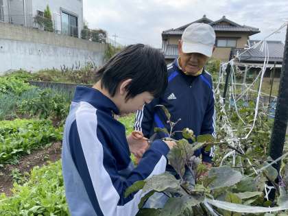 ナスの収穫や袋詰め、オクラの木の引き抜きなどたくさんの活動を経験させて頂きました。「楽しかった!」ととても充実した体験となりました。
