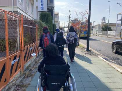 郵便局では、事前学習で製作したポストカードを投函しました。学校の職員に届く予定です。道の端を歩く、信号を見て渡るなど、安全に気を付けて行くことができました。