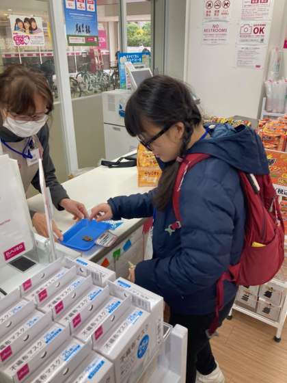 100円均一ショップで指導者から依頼された商品を探して購入しました。写真カードを手掛かりに、商品を一生懸命探す姿が印象的です。