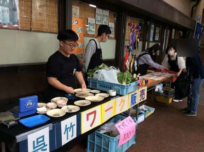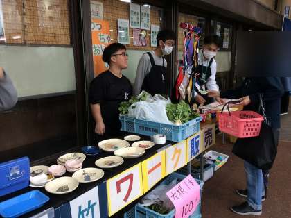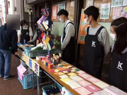 コロナ禍もあり、校外での販売学習は実に久しぶりでした。多少の緊張感はありましたが、生徒たちはお客さんを呼び込んだり商品を紹介したりと、精一杯地域の方と交流することができました。生徒の知り合いや、卒業生が買いに来てくれた他、道行く人たちが足を止めて見て頂けました。