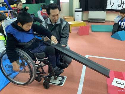 ボール転がしゲームでは、バラバラの数字が書かれている得点シートに向かってボールを転がします。「やったあ!8点!」「え!0点?」等、チームの友だちの点数に一喜一憂する子ども達。