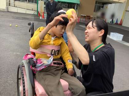 4月26日(金)の授業参観日に玉入れの練習をしました。