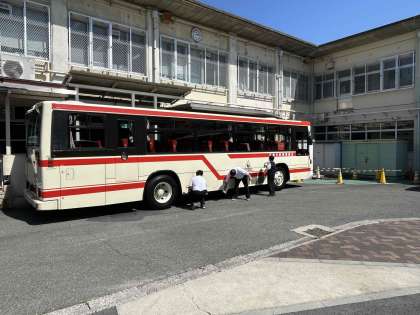 乗務員のみなさんがバスをきれいに清掃してくださっているご様子です。いつもありがとうございます!