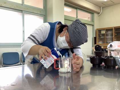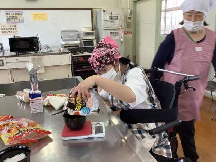 砂糖やココアパウダーを計量器で量ったり、泡だて器を使って混ぜたりして活動しました。