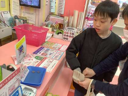 6年生は「オリンピア」というお店で、修学旅行に向けた買物学習をしました。