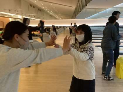 みんなで応援する姿や、なかなかピンが倒れず悔しがる姿、ピンがたくさん倒れると笑顔でハイタッチをする姿が見られました。