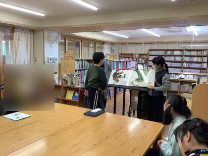 中学部の図書委員による読み聞かせを図書館で実施しました。