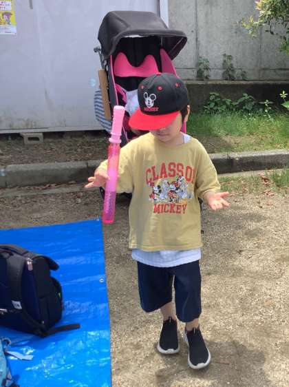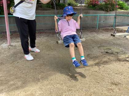 公園では、遊具で遊んだり砂場の砂をさわったり、シャボン玉をしたりと一人ひとりがとても楽しそうに過ごしていました。