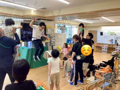 登場する動物たちと一緒に大ジャンプをして体を動かしました。