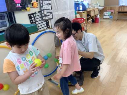 亀さんからお願いされたボールを集めます。指定された色や数にも挑戦しました。
