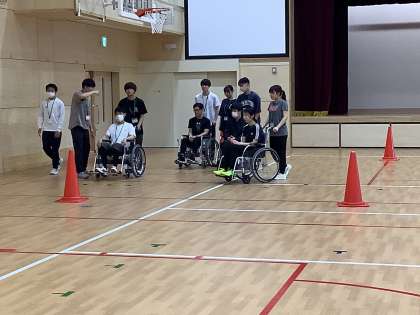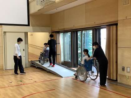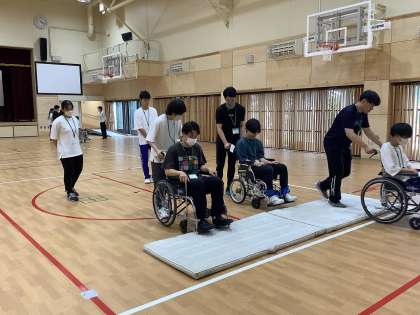 (写真は1日目放課後の介助・車いす体験の様子です)